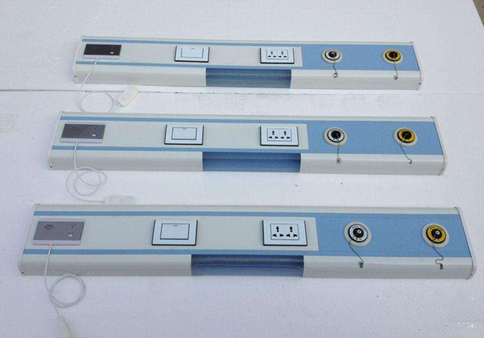 設(shè)備帶固定在病房床頭上方的墻壁上,用來安裝電源插座、呼叫按鈕、電源開關(guān)、中心供氧及負(fù)壓吸引等系統(tǒng)的氣體閥等設(shè)備,另外也可固定其它一些醫(yī)療設(shè)備,如輸液裝置、其它報(bào)警裝置等。