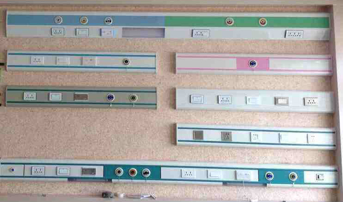 設(shè)備帶固定在病房床頭上方的墻壁上,用來安裝電源插座、呼叫按鈕、電源開關(guān)、中心供氧及負(fù)壓吸引等系統(tǒng)的氣體閥等設(shè)備,另外也可固定其它一些醫(yī)療設(shè)備,如輸液裝置、其它報警裝置等。